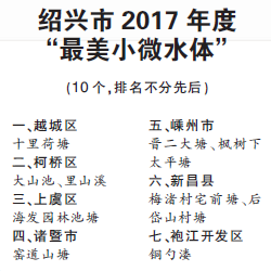 据了解,为深入贯彻落实市委市政府“治水创样板,三夺大禹鼎”决策部署,展示我市“五水共治”工作成效,挖掘宣传身边的治水典型,大力营造全民参与“五水共治”的浓厚氛围,今年1~2月,市治水办(河湖长办)在全市范围内组织开展了绍兴市2017年度“最美河湖、最美小微水体、最美护水人、最美河湖长”评选活动。