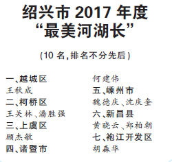 昨天受表彰的10位“最美河湖长”,基本都是基层干部。如嵊州市剡湖街道工农社区党总支书记沈庆奎,因为他“包干”的工农渠,成了一名需要不断处理上下游关系的“跨界河长”,但他没有畏缩,而是主动担当,“不但管好自己社区内的河段,也参与解决上游问题”,终于将一条“身份复杂”的“三不管”垃圾河,治理成了当地的样板河。而柯桥区兰亭街道办事处党工委副书记潘胜强,去年在一次巡河督查中不慎从3米多高的桥上摔下,造成右膝内侧韧带断裂,但手术后一出院,他又奔走在了治水一线。