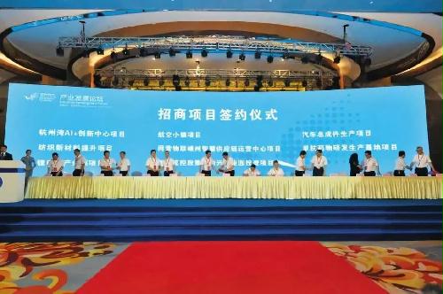 今年以来,市委、市政府高度重视招商工作,上下合力,多措并进,一大批中高端产业项目相继落户,形势喜人,成效显著。签约仪式上,来自全市六个区、县(市)和袍江新区、绍兴滨海新城的相关单位负责人与各投资方签订了落户意向协议。签约的招商项目分别为杭州湾AI+创新中心项目、纺织新材料提升项目、锂电池产业链项目、航空小镇项目、网营物联嵊州智慧供应链运营中心项目、新和成控股集团新兴产业园投资项目、汽车总成件生产项目、单抗药物研发生产基地项目、振德生物医用材料项目、智能安检系统项目、晶盛机电产业园项目、海亮有色智造工业园项目、美盛控股集团动漫文创产业园项目、新能源汽车精准挤压铸造设备及零部件生产项目、乐歌滨海智慧供应链管理产业园项目、现代工厂化养蚕产业化项目。